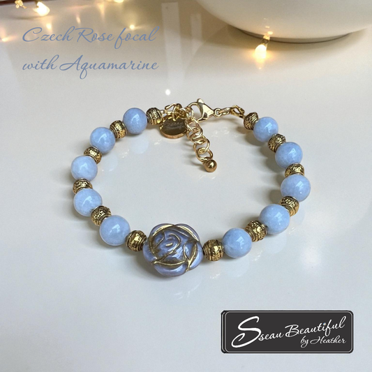 Adjustable Bracelet featuring a gorgeous Czech Firepolish Focal accented with a Maple Leaf Dangle
