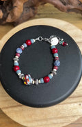 Colorful adjustable bracelet with African Fused Glass focal with red and blue accents